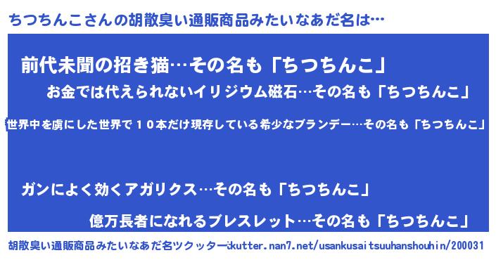 | ヒーロー風カッコイイあだ名 | 『仮面チツダー』『ネオチツチンコ』 |