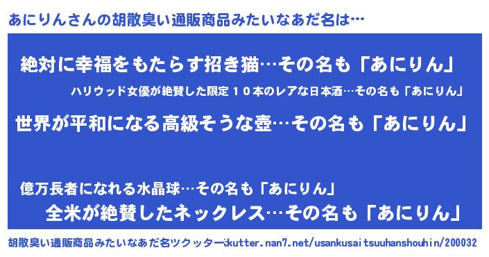 | 意味不明あだ名 | 『あにりんフォーエバー』 |