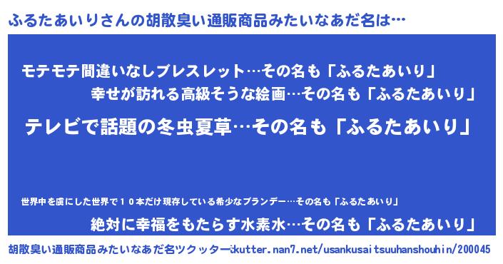 | 意味不明あだ名 | 『自称ふるたあいり』 |