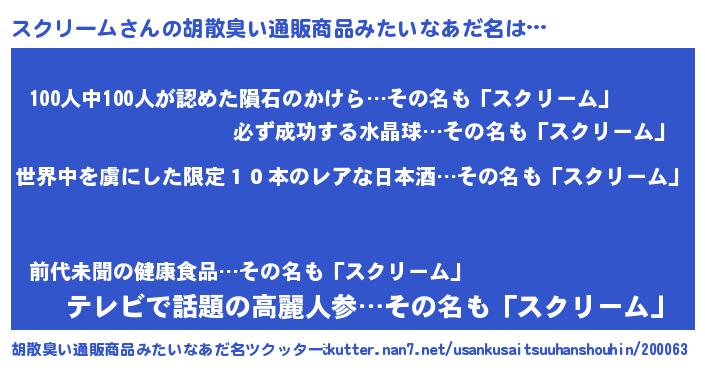 | ヘコむあだ名 | 『スクもー』『スクリーム(遠い目)』 |