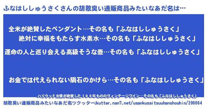 | 意味不明あだ名 | 『ふなはししゅうさくフォーエバー』 |