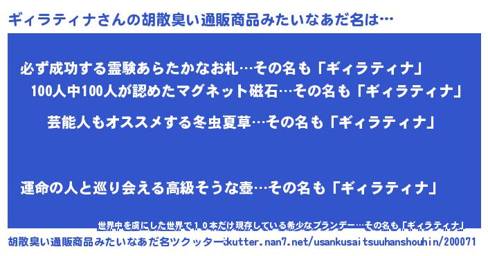| 意味不明あだ名 | 『ニラ科ギィラティナ属』 |