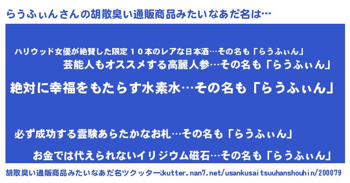 | 意味不明あだ名 | 『永久保存らうふぃん』『自称らうふぃん』 |