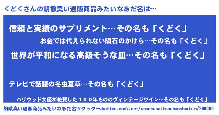 | ヘコむあだ名 | 『なまこ酢』『くどお』『くどにゅー』 |
