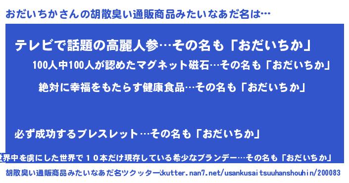 | 意味不明あだ名 | 『永久保存おだいちか』『自称おだいちか』 |