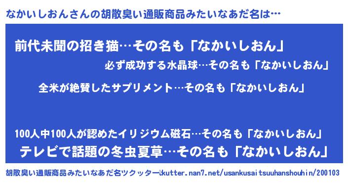 なかいしおんさんの胡散臭い通販商品みたいなあだ名をツクッター!