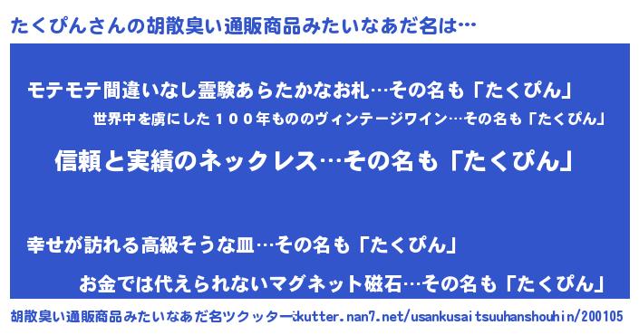 | 意味不明あだ名 | 『とにかく怪しいたくぴん』 |