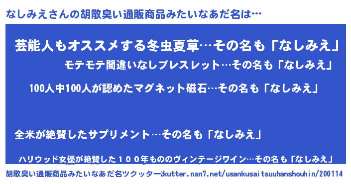 | ヘコむあだ名 | 『なしふぇ~』『なしを』『酢こんぶ』 |