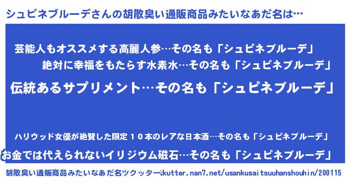 | ヘコむあだ名 | 『シュお』『シュピネブルーデ(遠い目)』 |