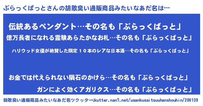 | 意味不明あだ名 | 『住所不定無職ぶらっくばっと(53歳)』 |