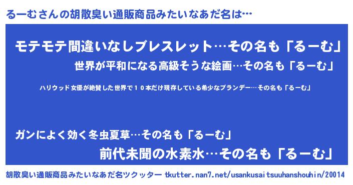 | ヘコむあだ名 | 『るーもー』『るーむ(笑)』 |