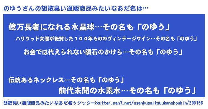 | ヘコむあだ名 | 『のゆもー』『のゆう(笑)』『つくし』 |