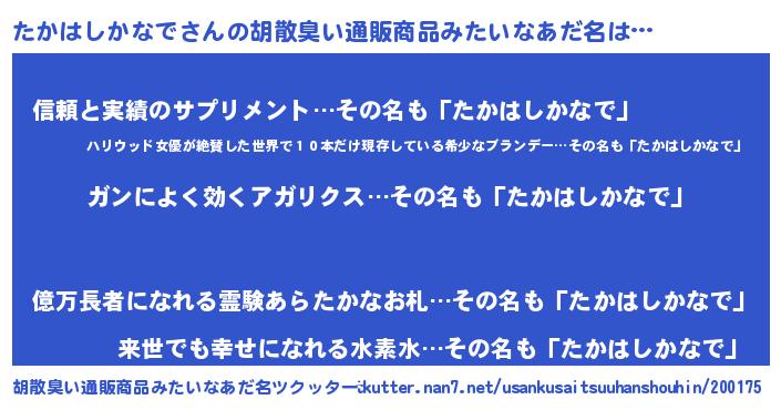 | 意味不明あだ名 | 『自称たかはしかなで』 |