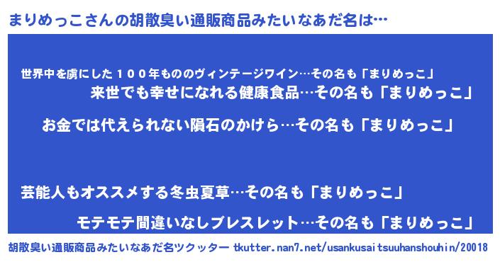 | ヘコむあだ名 | 『まりっふぃ~』『まりめっこ(小並感)』 |