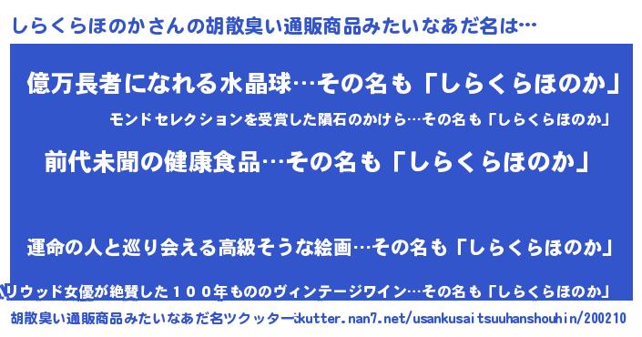 | ヘコむあだ名 | 『しらくらほのか(笑)』『しらふぇ~』 |