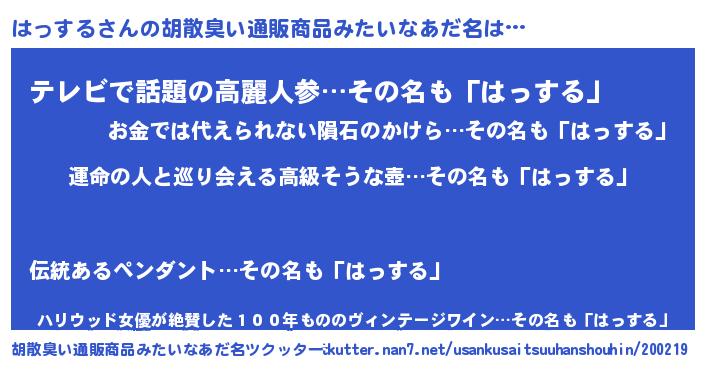 | 意味不明あだ名 | 『はっするフォーエバー』『自称はっする』 |