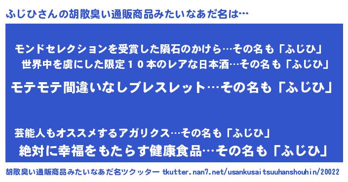 | ヘコむあだ名 | 『ふじにー』『ふじひ(震え声)』 |