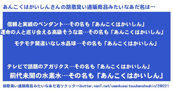 | ヒーロー風カッコイイあだ名 | 『スーパーアンコクハカイシン』 |