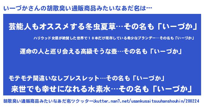 | 意味不明あだ名 | 『つくし科いーづか属』『自称いーづか』 |