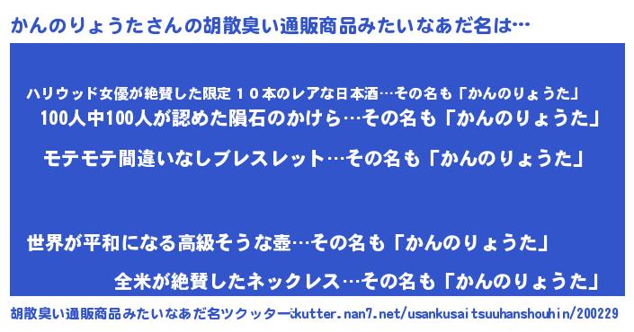 | 男性向けラノベタイトル風あだ名 | 『かんのりょうたの憂鬱』 |