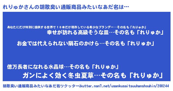 | 女子向けラノベタイトル風あだ名 | 『れりゅか恋絵巻』『闇のれりゅか』 |