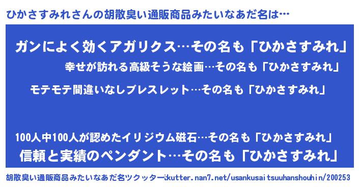 | 男性向けラノベタイトル風あだ名 | 『ヒカサスミレアートオンライン』 |
