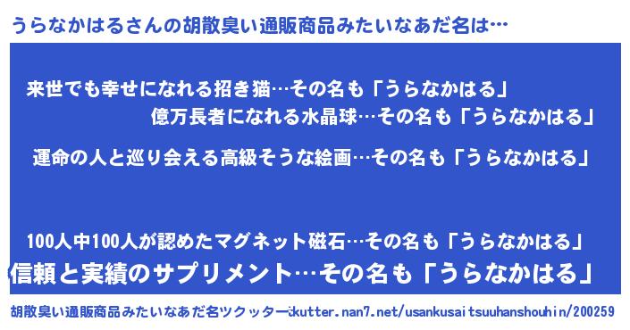 | ファンタジー風あだ名 | 『エターナルウラナカハルー』 |