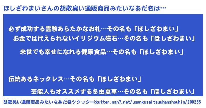 | ヘコむあだ名 | 『ほしざわまい(爆)』『ほしもー』 |