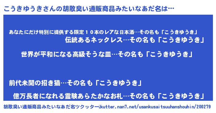 | 意味不明あだ名 | 『こうきゆうきフォーエバー』 |