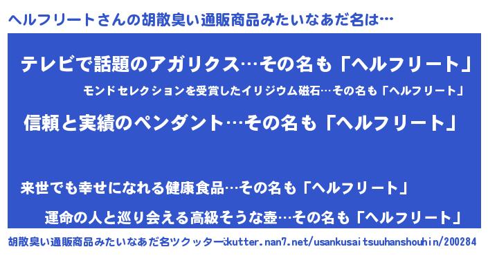| 男性向けラノベタイトル風あだ名 | 『ダンジョンにヘルフリートを求めるのは間違っているだろうか』 |