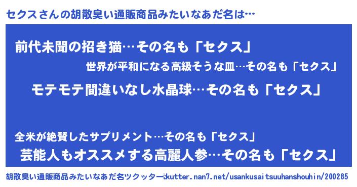 | 自動車の名前っぽいあだ名 | 『セクティマ』『デミセ』『レクセス』 |