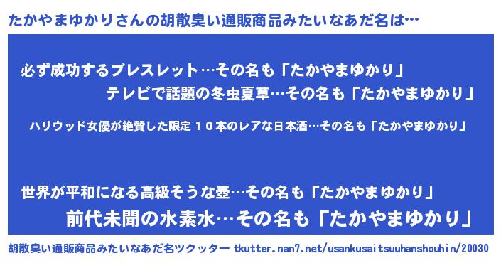 | 男性向けラノベタイトル風あだ名 | 『魔弾の王とたかやまゆかり』 |