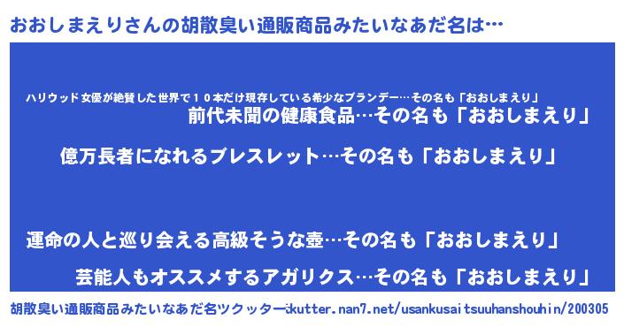 | 欧米人風あだ名 | 『マイケルおおしまえり』 |