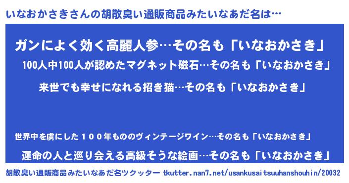 | 意味不明あだ名 | 『永久保存いなおかさき』 |