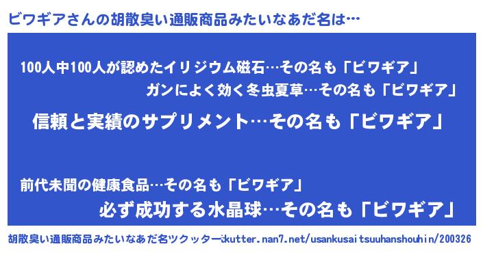 | 意味不明あだ名 | 『とにかく怪しいビワギア』 |