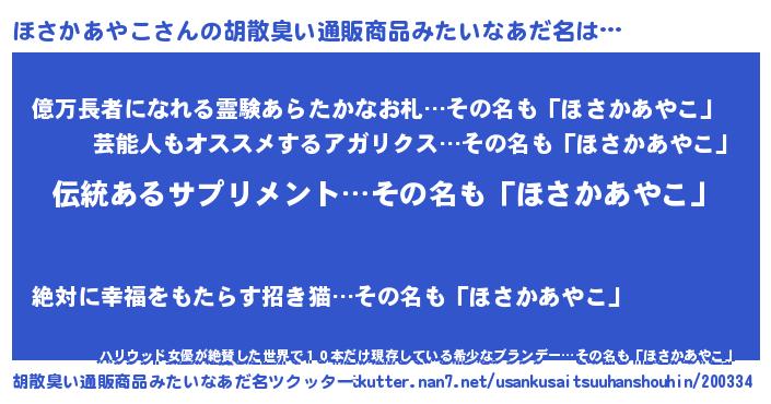 | 欧米人風あだ名 | 『ウサインほさかあやこ』 |