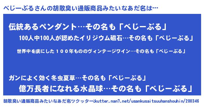 | 意味不明あだ名 | 『住所不定無職べじーぶる(2歳)』 |