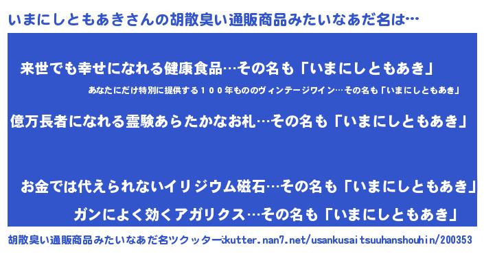 | 肩書あだ名 | 『いまにしともあき御曹司』 |
