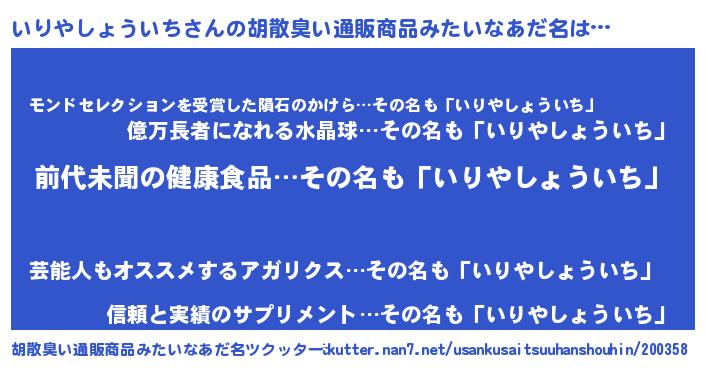 | 意味不明あだ名 | 『永久保存いりやしょういち』 |