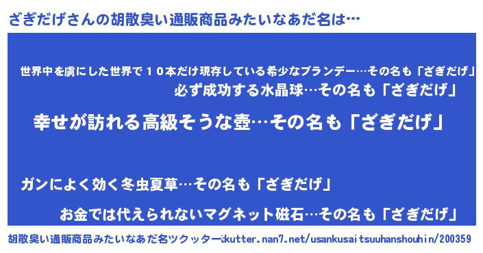 | 意味不明あだ名 | 『ざぎだげフォーエバー』 |