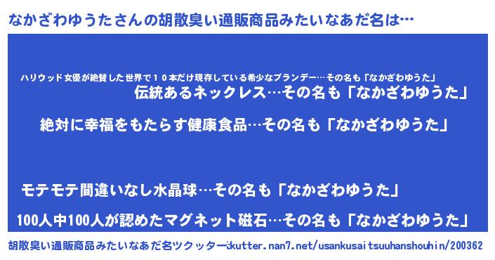 | ヘコむあだ名 | 『なかざわゆうた(苦笑)』『なかっちょ』 |