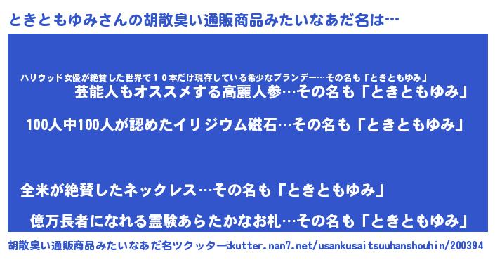 | 肩書あだ名 | 『ときともゆみ助手』『ときともゆみ中将』 |