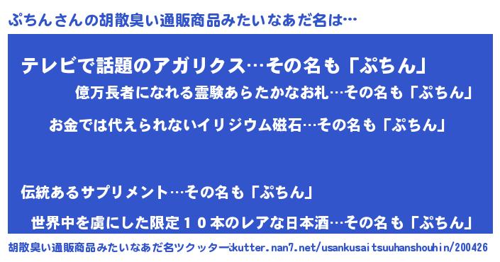 | 意味不明あだ名 | 『眠気覚ましガムぷちん味』『自称ぷちん』 |