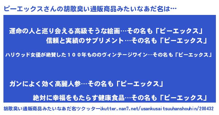 | 男性向けラノベタイトル風あだ名 | 『緋弾のピーエックス』 |