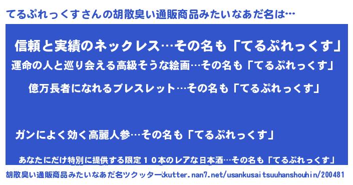 てるぷれっくすさんの胡散臭い通販商品みたいなあだ名をツクッター!