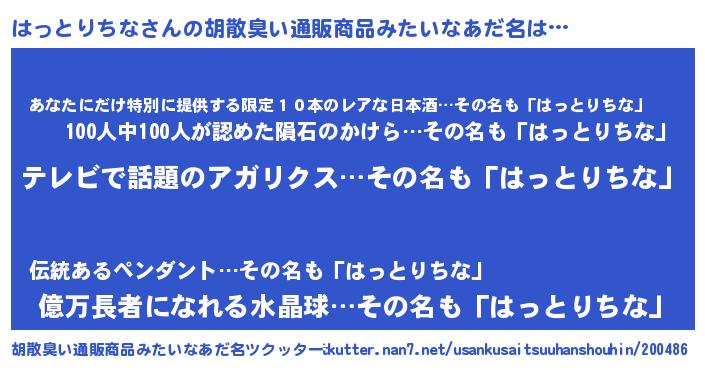 | 意味不明あだ名 | 『自称はっとりちな』 |