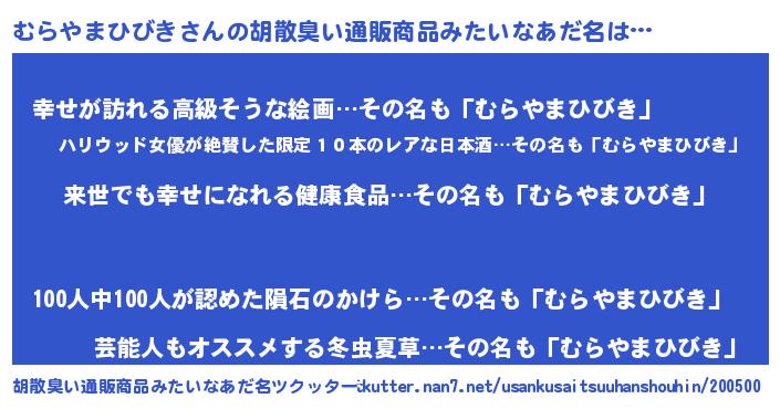 | ヘコむあだ名 | 『むらやまひびき(苦笑)』『酢こんぶ』 |