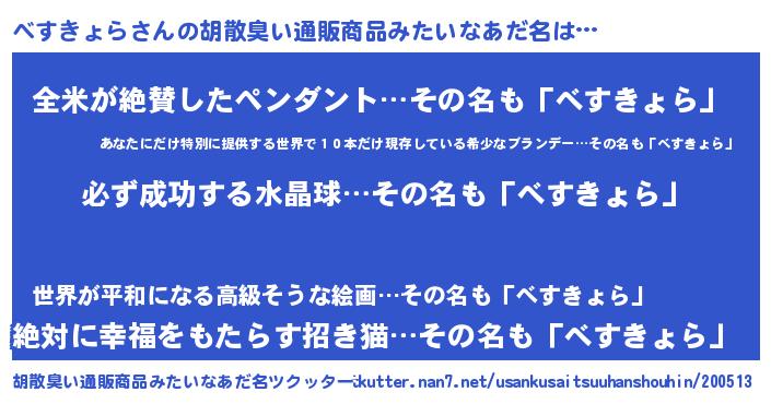 | 男性向けラノベタイトル風あだ名 | 『べすきょらの憂鬱』 |