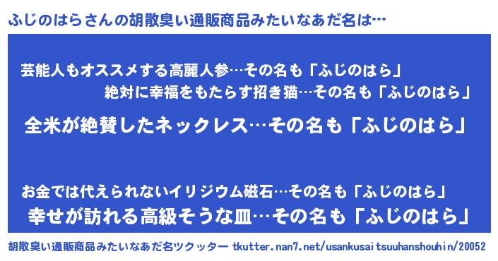| 意味不明あだ名 | 『とにかく怪しいふじのはら』 |