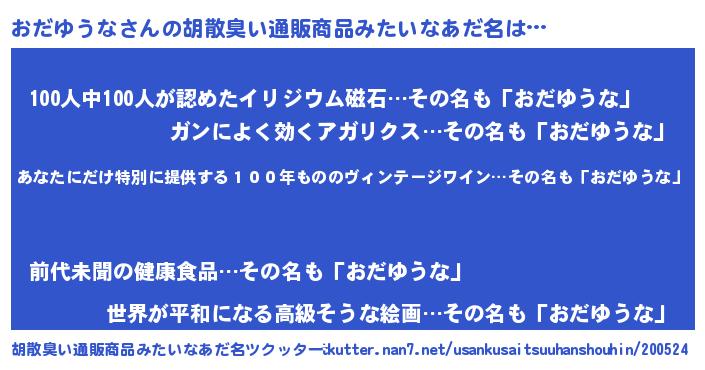 | ヒーロー風カッコイイあだ名 | 『仮面オダダー』『正義の使者おだゆうな』 |